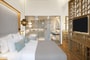 Our cozy Junior Suite is the perfect place for guests who seek privacy & relaxation. Designed to provide comfort and convenience, its stylish amenities feature a sleek indoor jacuzzi. The oversized windows offer a stunning view while the private balcony with a spacious private pool that opens out to a retreat of ultimate relaxation for everyone.
