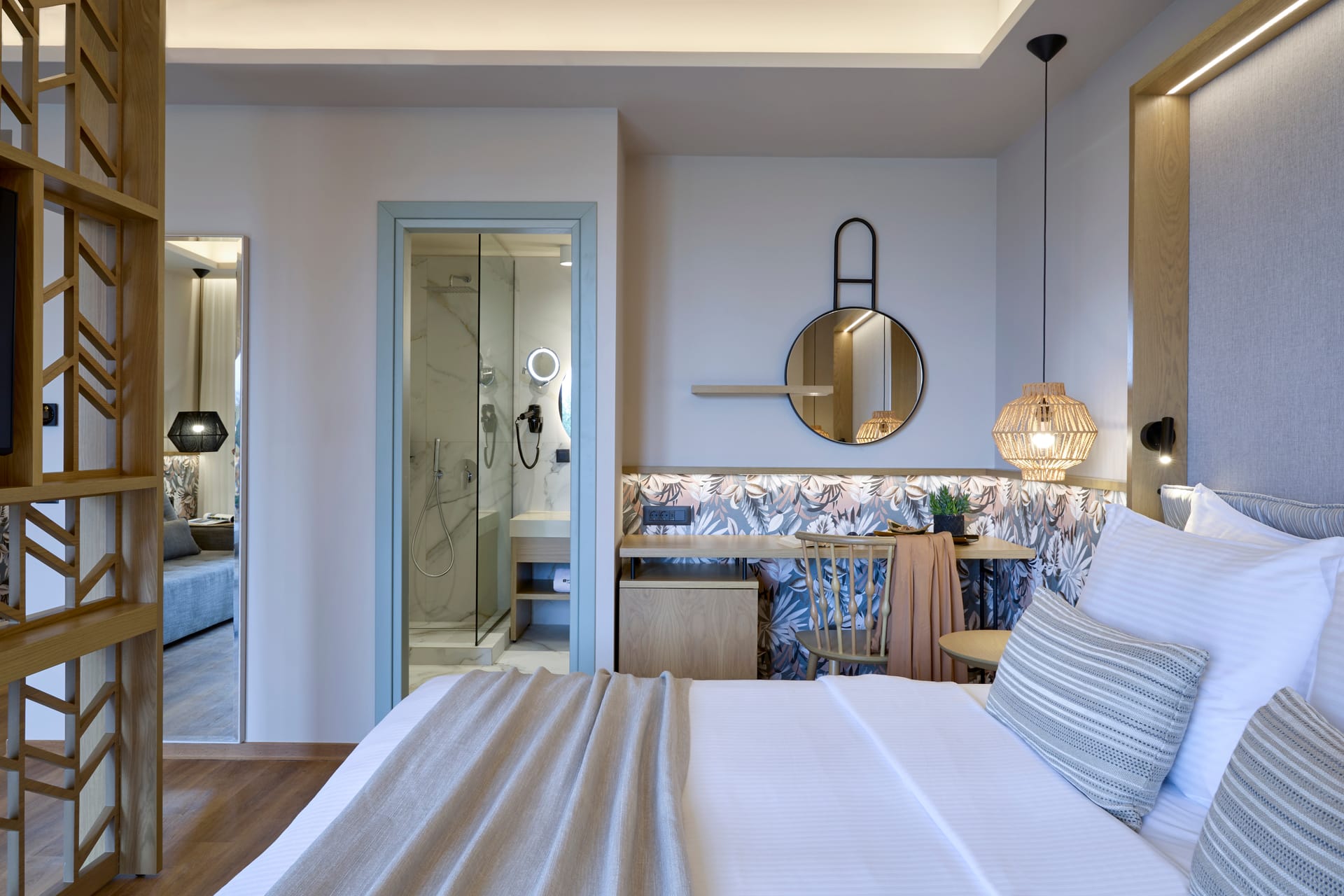 The Executive Bungalow with Private Pool invites guests to indulge in absolute privacy and comfort, with direct access to a serene pool and elegant sun loungers—perfect for unwinding under the sun. This refined retreat features a spacious interior with a stylish open-plan sitting area and a modern, luxurious bathroom. Thoughtfully designed with contemporary yet cozy furnishings, and complemented by a beautifully appointed private terrace, it offers an exclusive and inspiring atmosphere for pure relaxation.
