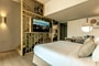 Our cozy Maisonette is a serene haven for the whole family. Unfolding on two floors, you will find two comfortable bedrooms. Its stylish amenities feature two sleek luxurious bathrooms for the convenience of guests. Tradition meets modernity in a lovely environment, highlighting the beauty of nature while the private balcony provides stupendous views of the garden’s lush greenery or the ever-sparkling sea.