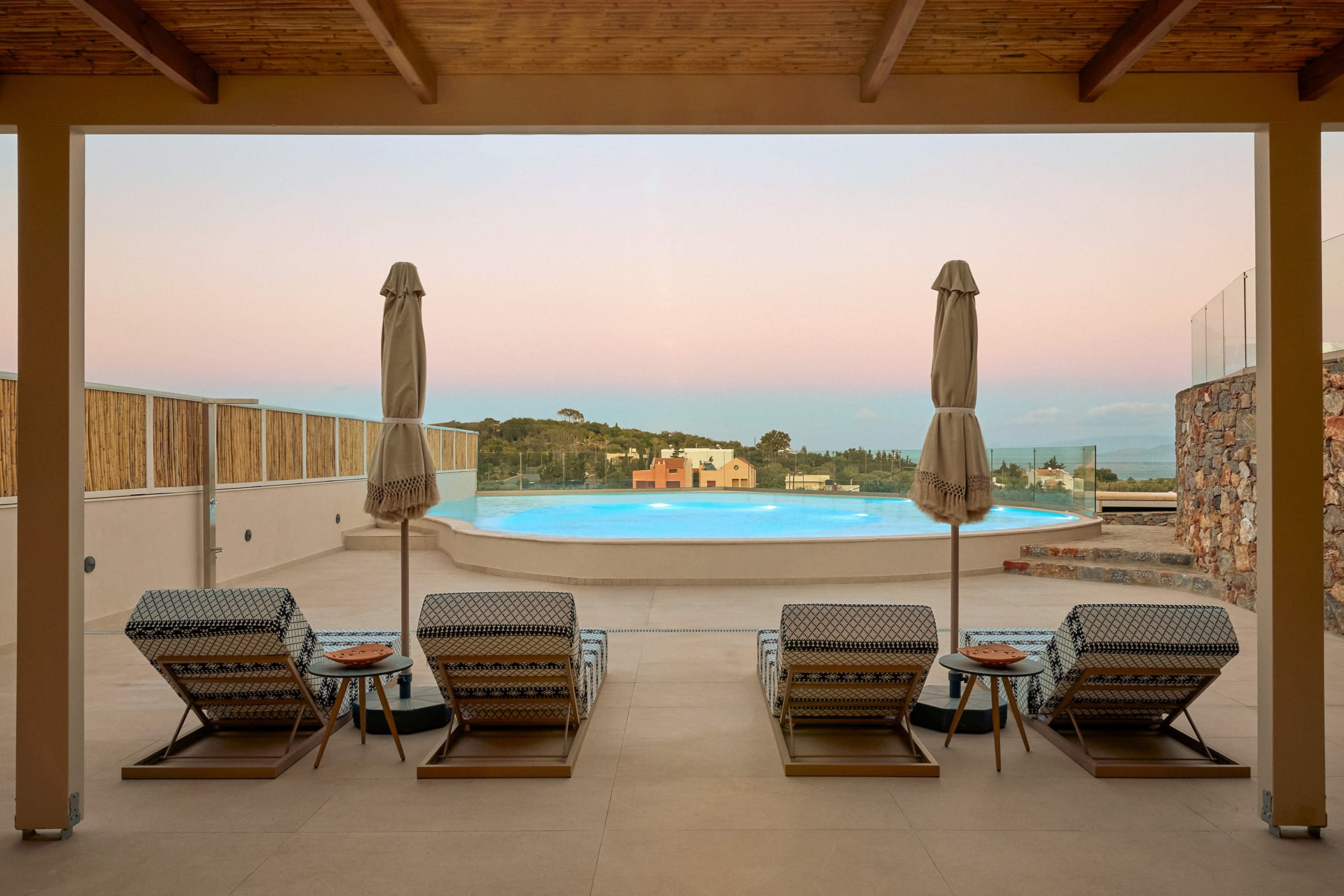 Agali offers the perfect blend of comfort, elegance, and breathtaking sea views. This spacious villa is designed to accommodate up to 12 guests, making it an ideal choice for large families, groups of friends, or those seeking an exceptional getaway. The villa features 2 luxurious bedrooms, each furnished with double beds, and offers a total of 4 stylish bathrooms, including 3 master bathrooms with 2 bathtubs for ultimate relaxation. The villa is designed with comfort in mind, boasting two walk-in closets and spacious living areas. The living room, equipped with 4 sofa beds, provides ample space for relaxation, while the villa also includes a dining area and a cinema room, perfect for movie nights or unwinding after a long day.